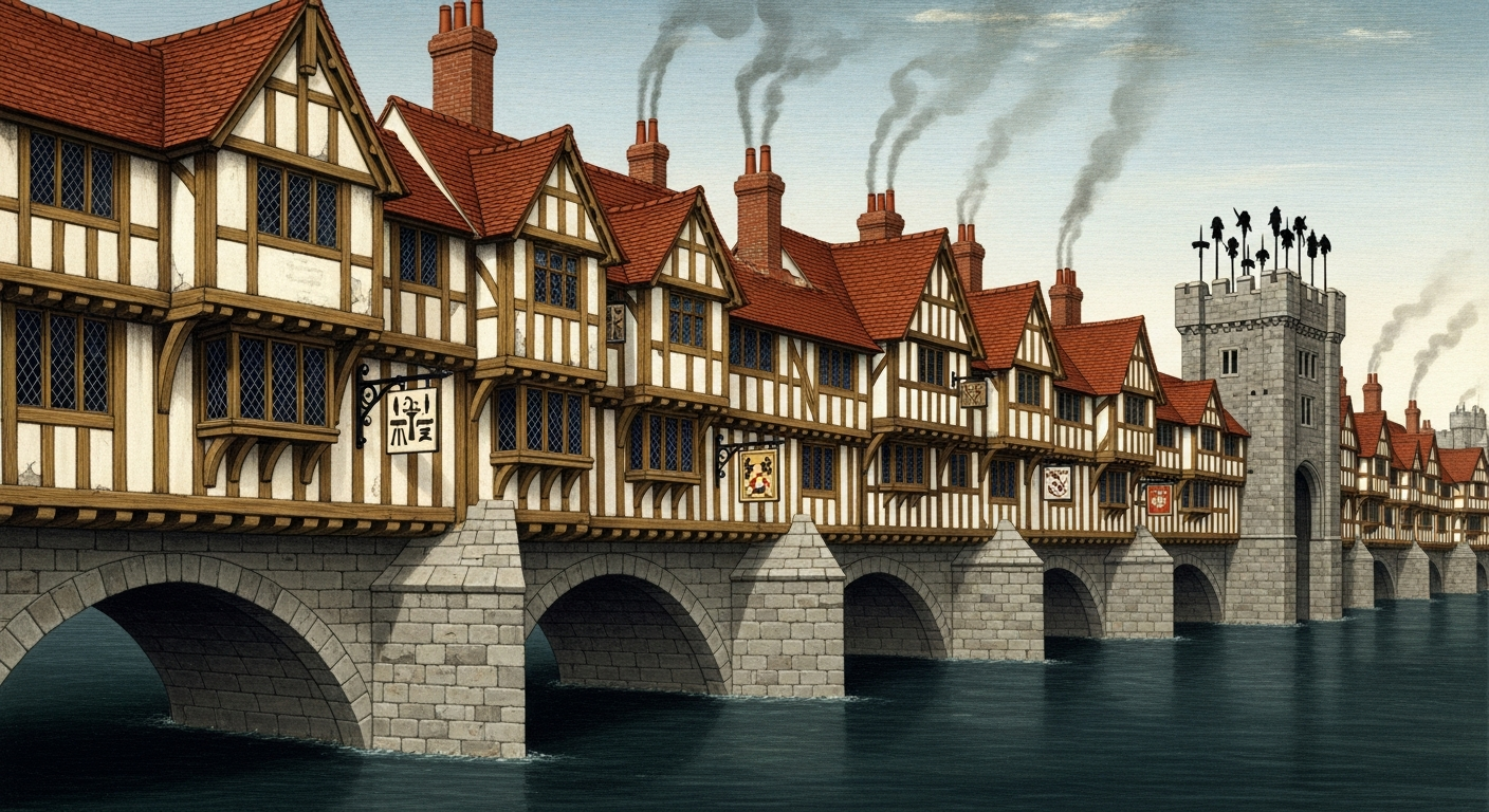 For nearly six centuries, Old London Bridge stood as one of Europe’s most remarkable architectural achievements and England’s most important river crossing. During the Tudor period, from 1485 to 1603, this stone bridge became a microcosm of London itself – overcrowded, commercially vibrant, and darkly fascinating. The bridge that Henry VIII, Elizabeth I, and countless ordinary Tudors knew was far more than infrastructure; it was a living, breathing community perched precariously above the rushing Thames.