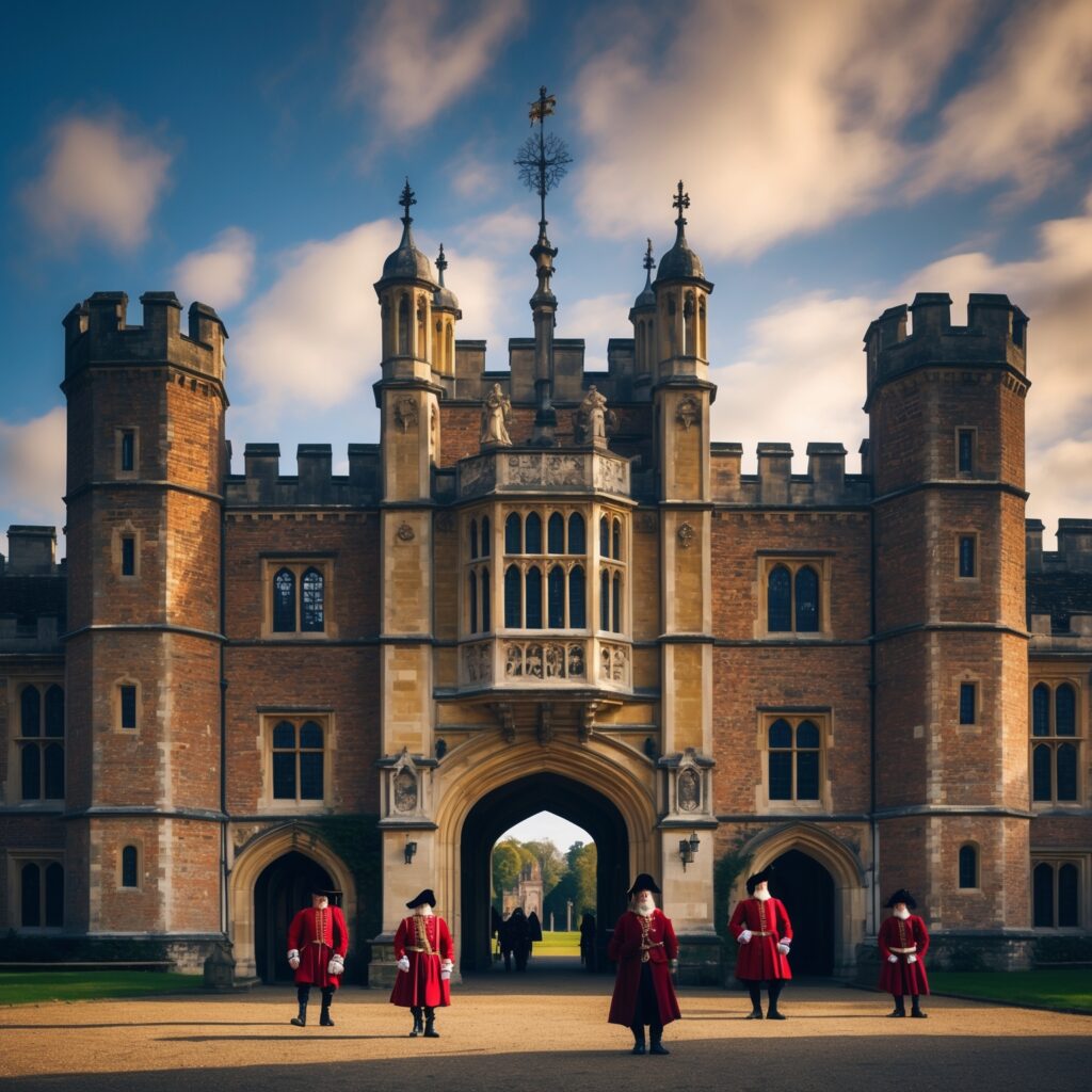 Hampton Court Palace began not as a royal residence but as a personal vanity project. Cardinal Thomas Wolsey, Henry VIII’s chief minister and the most powerful churchman in England (allegedly the ‘son of a butcher’, so demonstrating that Henry appointed the most capable people for the job, not just the nobles), began building it in 1514 as a statement of his own magnificence. It was a palace so opulent that contemporaries whispered it outshone the King’s own residences. Wolsey spared nothing: glittering red brick, decorative chimneys, state apartments furnished with tapestries woven with silk and gold thread. When Henry finally took notice, Wolsey attempted to save himself by gifting the palace to the Crown in 1529. It didn’t work. He died in disgrace the following year. But Hampton Court remained, and Henry proceeded to make it his own with characteristic excess.